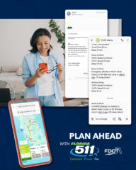 A few moments of planning can save you time on the road. Visit FL511.com or check the Florida 511 Mobile App before heading out to check current traffic conditions, including directions, incidents, closures, and detours along your route.